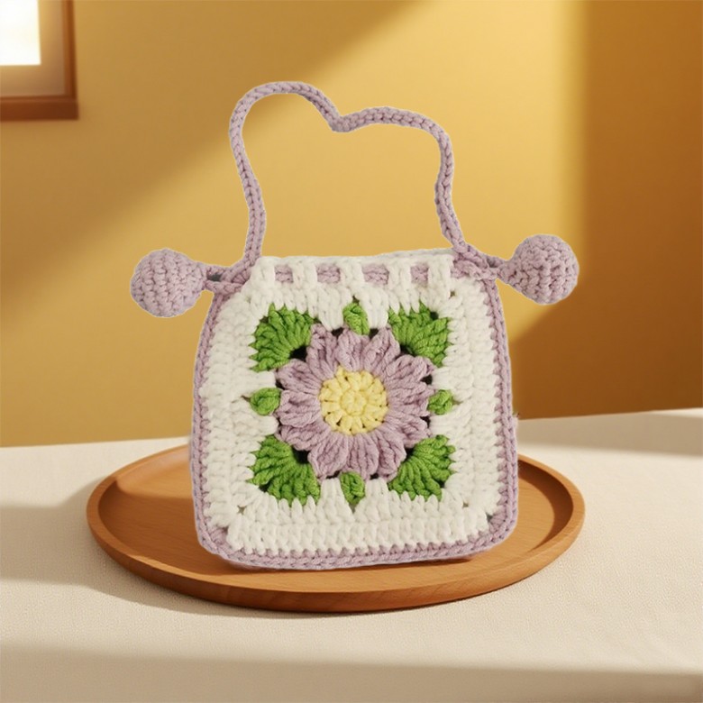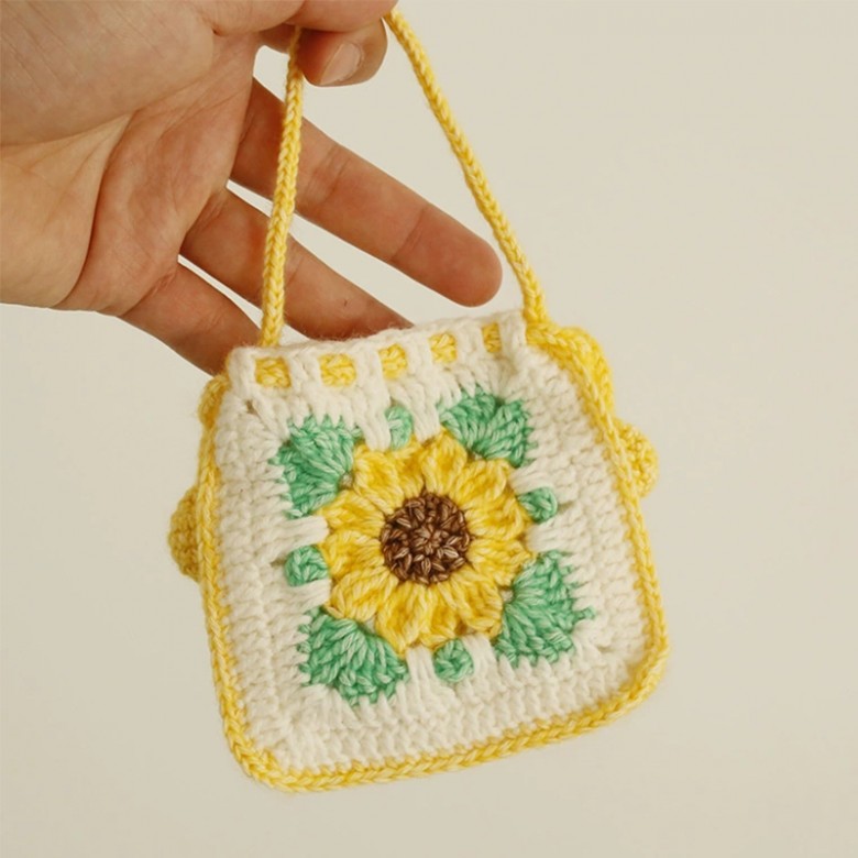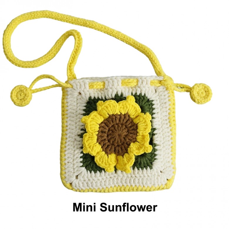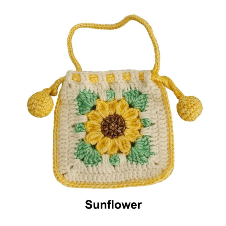 The handmade crochet sunflower coin purse blends the warmth of handcrafted artistry with the cheerful charm of sunflowers, creating a compact yet eye-catching fashion piece. Made from premium soft yarn, it is durable enough for daily use while offering a cozy texture. Each purse is carefully crocheted by hand, ensuring that no two are exactly alike. Available in a range of color options to suit different moods and outfits, Light Yellow, Bright and lively, like the first rays of morning sunshine. Light Pink, Sweet and gentle, full of girlish charm. Light Purple, Dreamy and romantic, like a garden wrapped in purple veils. Dark Yellow, Vintage and artistic, with a sophisticated retro feel. The drawstring closure with playful ball accents makes it both practical and cute, easily securing coins, lip balm, earphones, or other small items. With its portable size, it's perfect for a casual stroll, coffee date, or short trip. More than just a coin purse, it carries sunshine and positivity with you, adding warmth, energy, and charm to your everyday style.